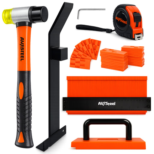 Laminate Wood Flooring Installation Kit 45 Pcs - Tapping Block with Handle, Pull Bar, Double-Faced Mallet, Contour Gauge and Spacers
